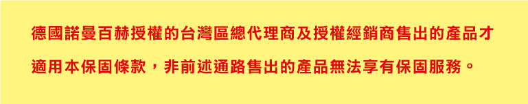 所有保固條款內容與維修流程,本公司保有隨時調整與變更之權利,並以本公司德國博依官網諾曼百赫官網 「保固說明」的最新公告為主。